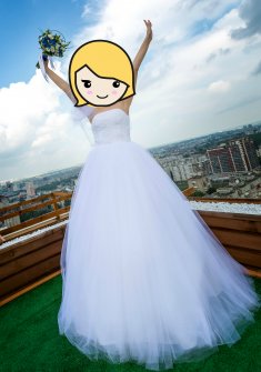 Продам платье счастливое платье невесты!В хорошем состоянии! Белый верх и чуть голубоватый оттенок юбки. Сзади 2 больше ленты, для крупного банта.