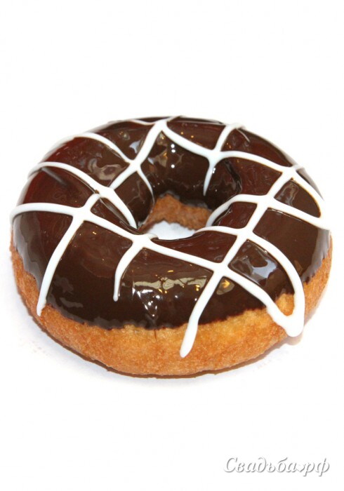 Пончик в шоколадной глазури политый белой помадкой. Без начинки.