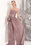 | Ткань: | шифон; на талии - атласный пояс с крупным бантом. |